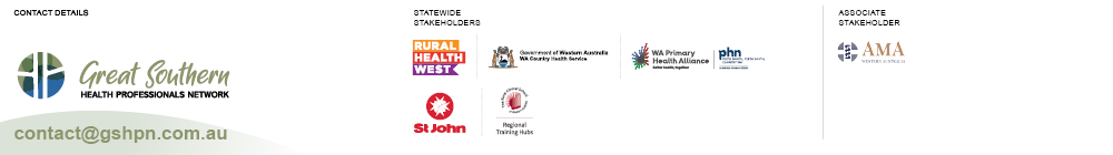 Privacy Statement The Privacy Act 2014 provides that before your personal contact details can be published or made available to major sponsors, exhibitors and other parties directly related to this workshop, you must give your consent. If you do not consent to your contact details being provided to the above mentioned parties, please contact the Great Southern Health Professionals Network team at contact@gshpn.com.au The GSHPN values and respects your privacy and personal details. Personal information is collected in accordance with our Privacy Policy which can be viewed at https://gshpn.com.au/privacy-policy/ Photo and Video Footage Photos and video footage may be taken by either Great Southern Health Professionals Network staff or other participants during the course of this event. This imagery may be used in Great Southern Health Professionals Network marketing material to either promote future events or in the Great Southern Health Professionals Network newsletter. If you do not consent to photos or videos being taken, please contact the GSHPN team at contact@gshpn.com.a