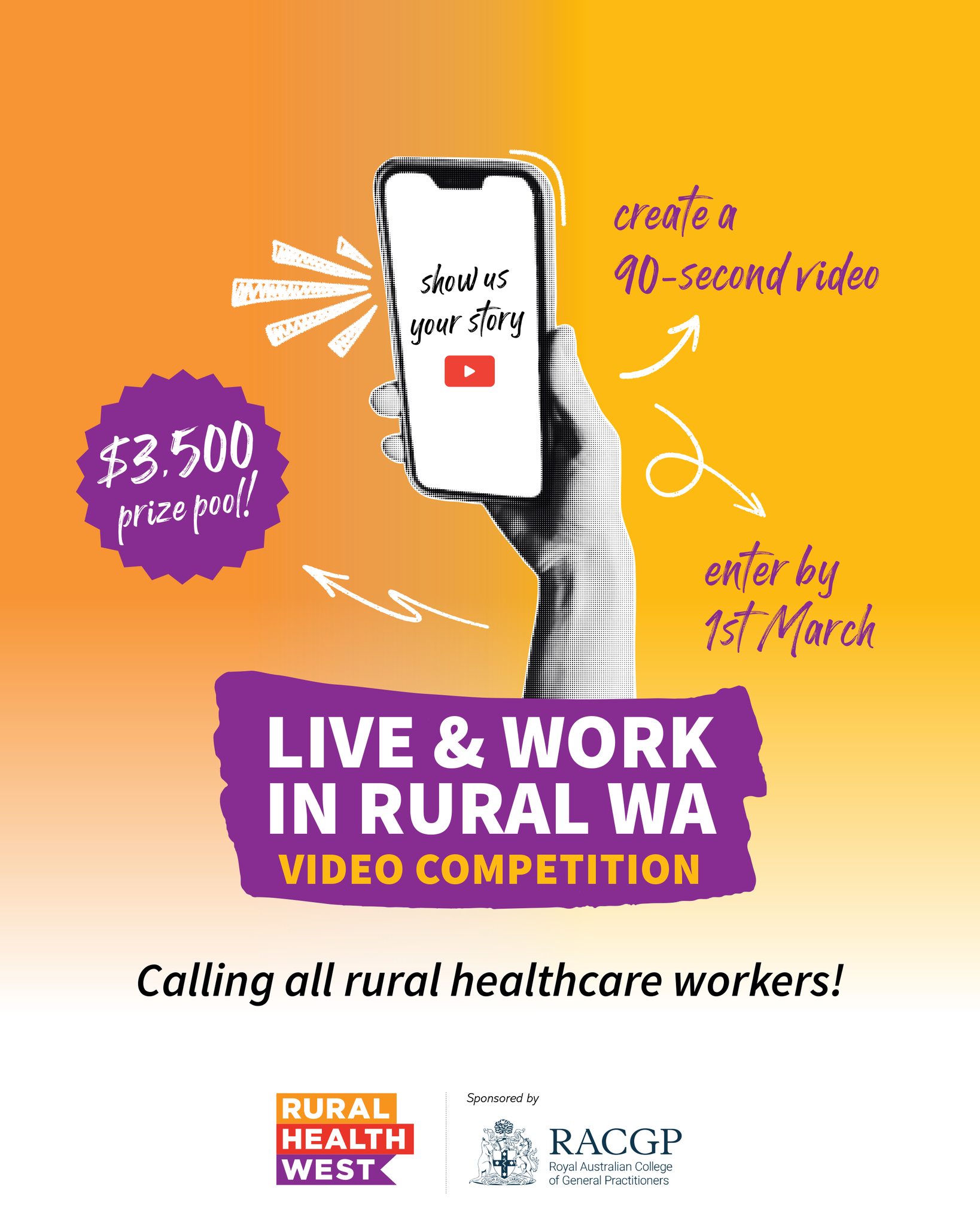 The Live and Work Rural Video Competition invites final-year students on rural placements in WA and health professionals currently living and working in rural WA (MMM 2–7) to share what makes rural practice unique and rewarding.