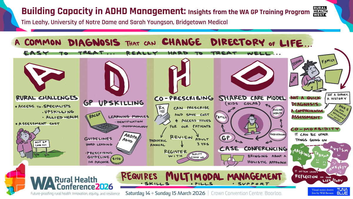 As rural and remote communities across Western Australia face evolving health challenges from climate change to workforce shortages and technological transformation. The need to future-proof rural healthcare has never been more pressing. This theme focuses on preparing for the next decade of rural health by embracing innovation, ensuring equity, and building resilient systems and communities. It invites collaboration across sectors to drive impactful, sustainable, and culturally-safe health outcomes for all who call rural WA home.