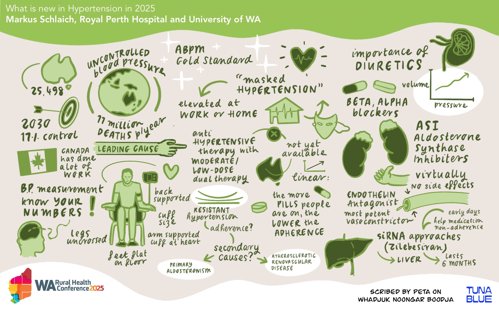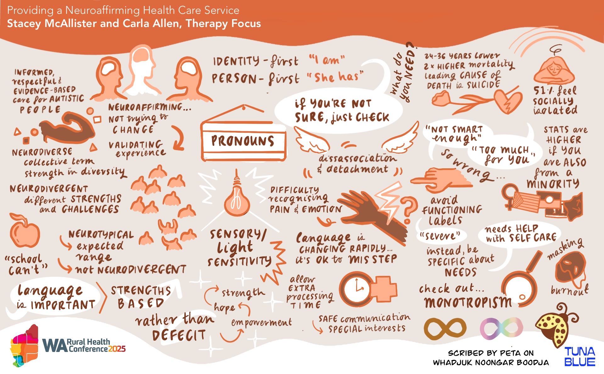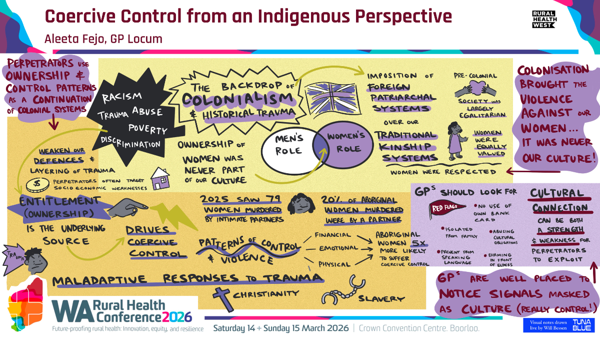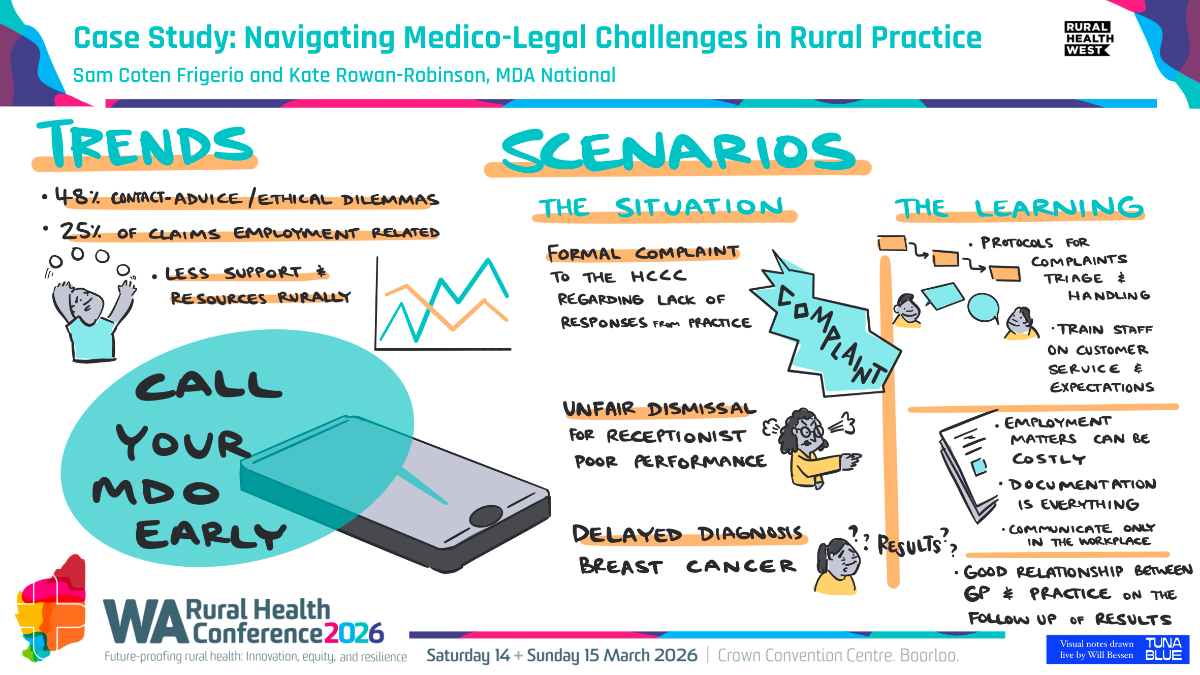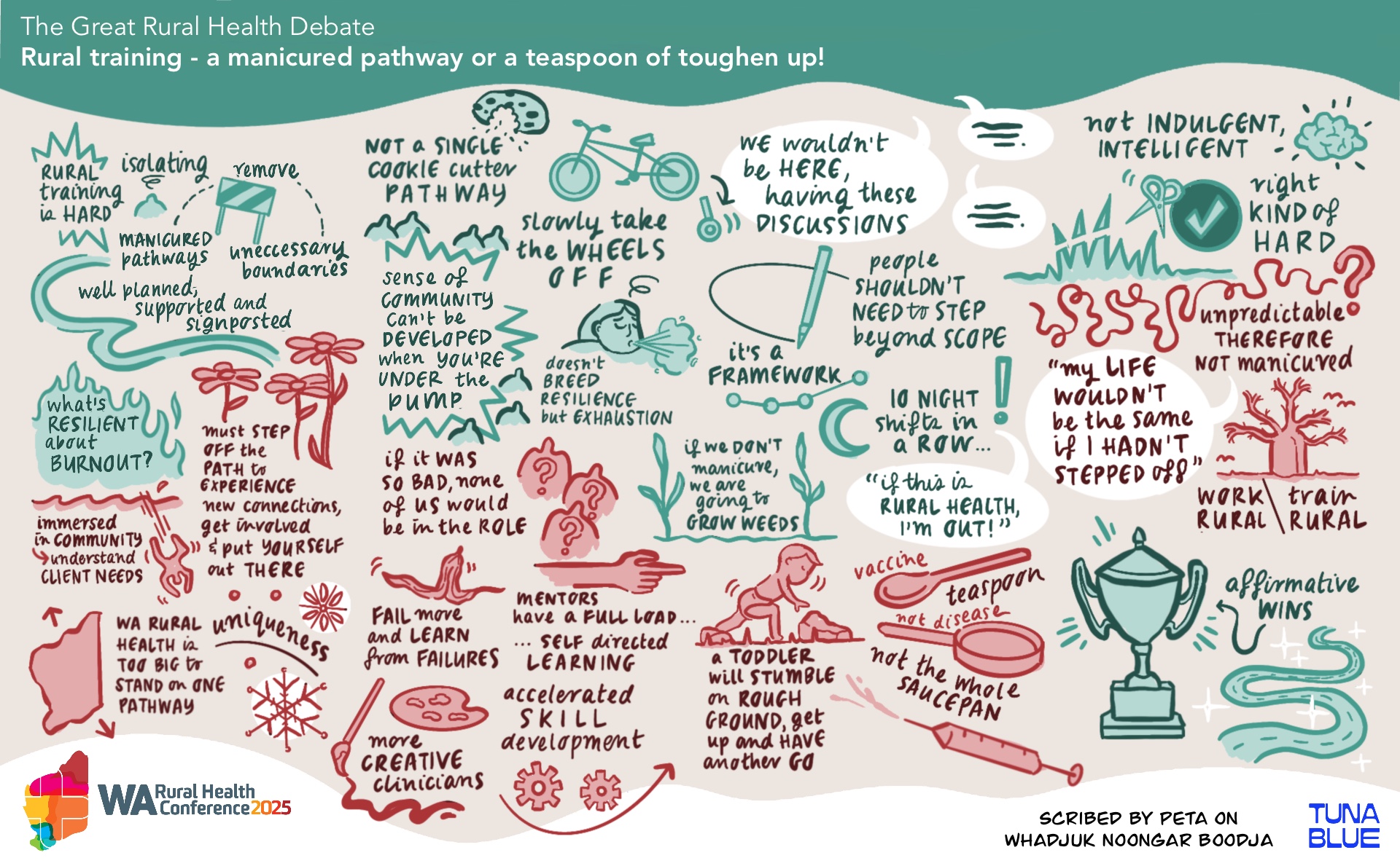 Explore our gallery of graphic recordings, created by Tuna Blue, from previous WA Rural Health Conferences. These visually engaging summaries capture key insights, ideas, and discussions from our events, bringing them to life in a creative and memorable way.